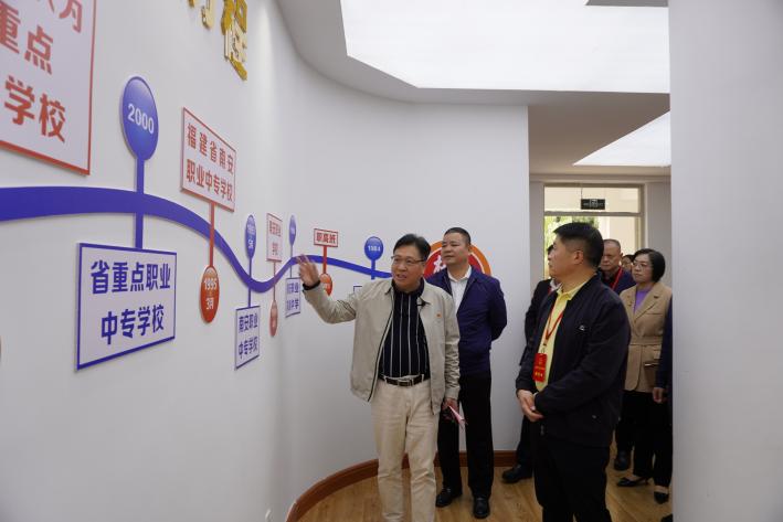 在南安职专校长吕文都和书记傅文超的陪同下,调研组对学校进行实地考察,详细了解实训中心设备设施、产教融合及学校专业建设情况。